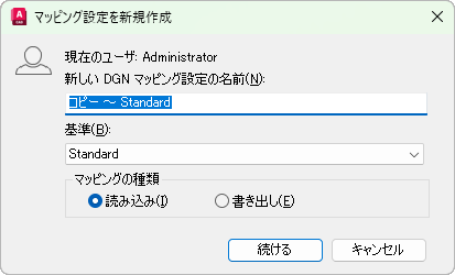 DGN ファイルを読み込んだり書き出すためのマッピングを設定します。