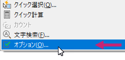 - 図面ファイルを開いた状態で、作図領域を右クリックして[オプション]を選択します。