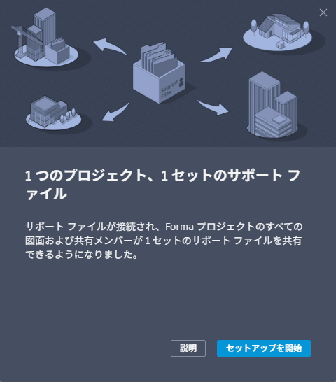 重要: 接続されたサポート ファイルは、Forma Data Management でプロジェクト管理者レベルのアクセス権限を持つ Autodesk プロジェクトのメンバーのみが設定できます。