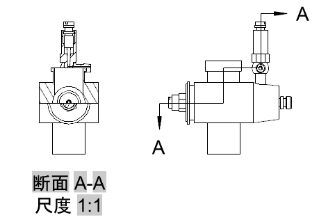 オフセット断面ビューは、直線にはないフィーチャを示すために、切断平面をオフセットする(曲げる)ことにより生成されます。