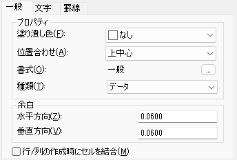 セルの罫線とセル内の文字との間隔をコントロールします。セルの余白設定は、表のすべてのセルに適用されます。既定の設定は、メートル単位では1.5、フィート/インチ単位では 0.06 です。