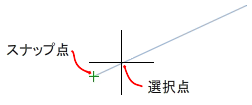 カーソルがオブジェクトの端点を越えると、延長線(線分または円弧)が一時的に表示され、その延長線上の点を指定することができます。