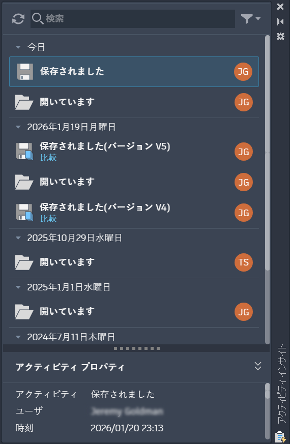 アクティビティ インサイトは、各メンバーの更新内容を図面ファイルに記録し、コラボレーションを合理化します。また、中断した時点から再開できるようにします。