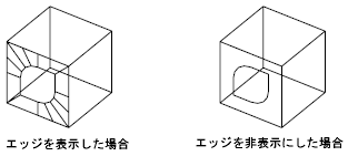 3D 面のエッジの表示/非表示を切り替えることができます。それによって、穴のあいたオブジェクトの正確なモデリングを行えます。エッジを作成するときの最初の点で i または invisible と入力すると、エッジが非表示になります。