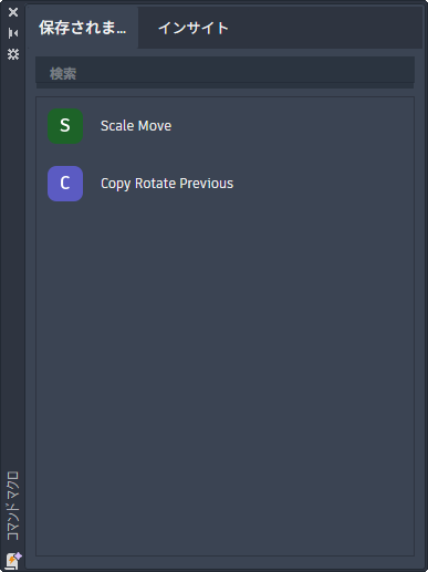 [インサイト]タブで以前に保存したコマンド マクロのリスト。