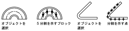 注: MEASURE[メジャー]および DIVIDE[ディバイダ]コマンドでブロック参照を挿入している場合、ブロック内の可変属性は使用できません。