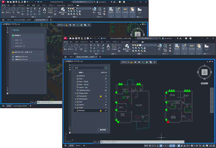 - すべてのブロックのインスタンスをカウントする。[カウント]パレットを使用して、現在の図面内のすべてのカウント対象のブロックを表示および管理します。