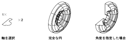 軸を中心にしてオブジェクトを回転することによって、3D ソリッドまたはサーフェスを作成します。