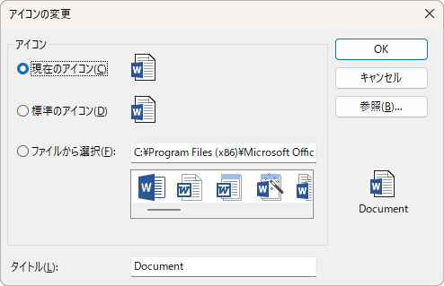 [参照]ダイアログ ボックス(標準のファイル選択ダイアログ ボックス)が表示され、ファイルからアイコンを選択できます。
