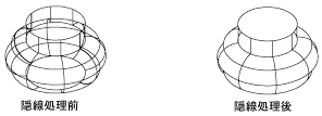 2D ワイヤフレーム表示スタイルで、隠線処理をして 3D モデルを表示します。