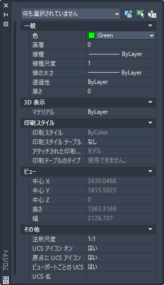 選択したオブジェクトがない場合、上記のハイライト表示されたドロップダウン リストに図面の現在の設定が表示されます。オブジェクトを選択した場合、ドロップダウン リストにオブジェクトのプロパティ設定が表示されます。