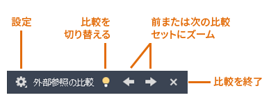 外部参照比較操作を開始すると、[外部参照比較]ツールバーが表示されます。