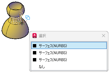 隠れているサブオブジェクトを見つける 1 つの方法は、[作図補助設定]ダイアログ ボックスの[選択の循環]タブで[選択循環リスト ボックスを表示]をオンにします。次に、リストから選択して、サブオブジェクトを選択できます。