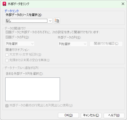 スプレッドシートに表示される順序で列名が表示されます。データの関連付けを行うと、選択した列のデータが図面データにリンクされます。