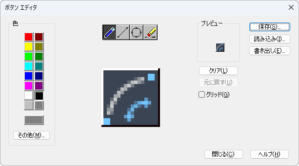 このチェック ボックスをオンにすると、編集領域にグリッドが表示されます。各グリッドの正方形が 1 ピクセルを表しています。