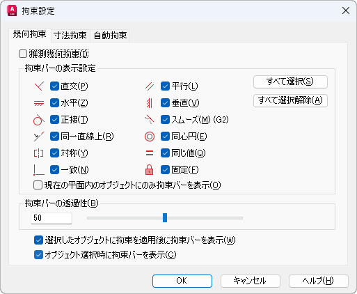 [幾何拘束]タブ([拘束設定]ダイアログ ボックス)
