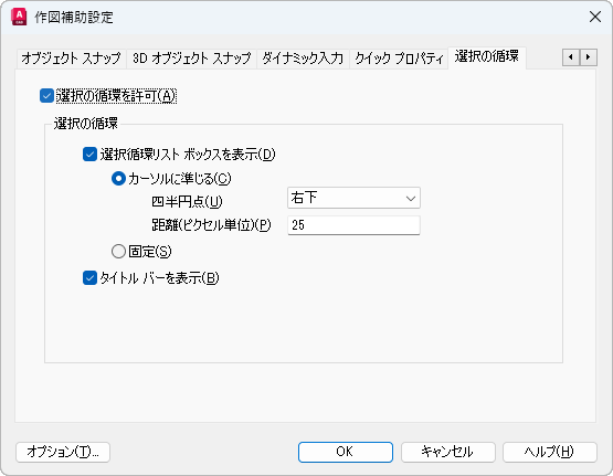 [選択の循環]タブ([作図補助設定]ダイアログ ボックス)