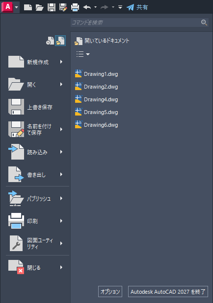 開いているドキュメントが、最も最近開いたファイルを一番上にして、[開いているドキュメント]一覧に表示されます。ドキュメントをアクティブにするには、名前を選択します。