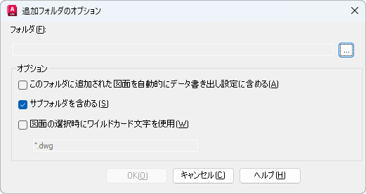 データ書き出し処理の際、選択したフォルダのサブフォルダの図面を含めます。