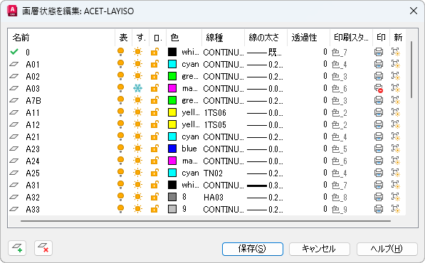 LAYER[画層管理] (コマンド) 検索: [画層状態管理] > [編集]