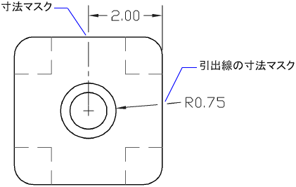 寸法マスクを使用すると、寸法線、寸法補助線、引出線の一部を設計図面上で非表示にできます。