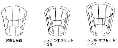 • 面を除去: オブジェクトからシェルを作成するときに除去する面サブオブジェクトを指定します。