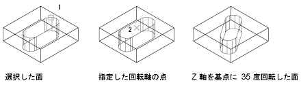 1 つ以上の面または 1 つのソリッド上のフィーチャの集まりを、指定した軸を基点にして回転させます。