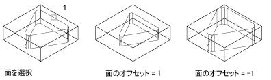 オフセットのサイズを設定します。正の値を指定すると、ソリッドの外周の内側にシェルが作成されます。負の値を指定すると、ソリッドの外周の外側にシェルが作成されます。