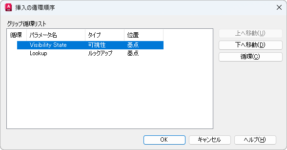 ダイナミック ブロック参照の挿入位置として使用できるグリップの循環順序を指定します。