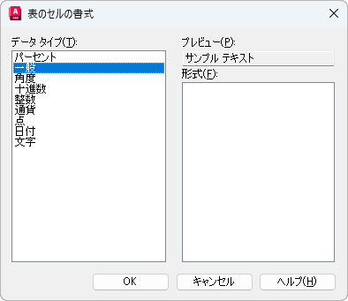 [角度]、[十進数]、[点]、[整数]に対してのみ、[その他の形式]ダイアログ ボックスが表示され、そこで表のセルに対するその他の形式を設定します。