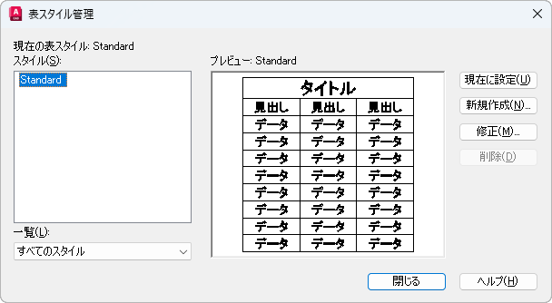 TABLESTYLE[表スタイル管理] (コマンド) 検索