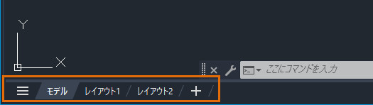既定では、[モデル]タブと複数の名前の付いたレイアウト タブは、作図領域の左下コーナーに表示されます。