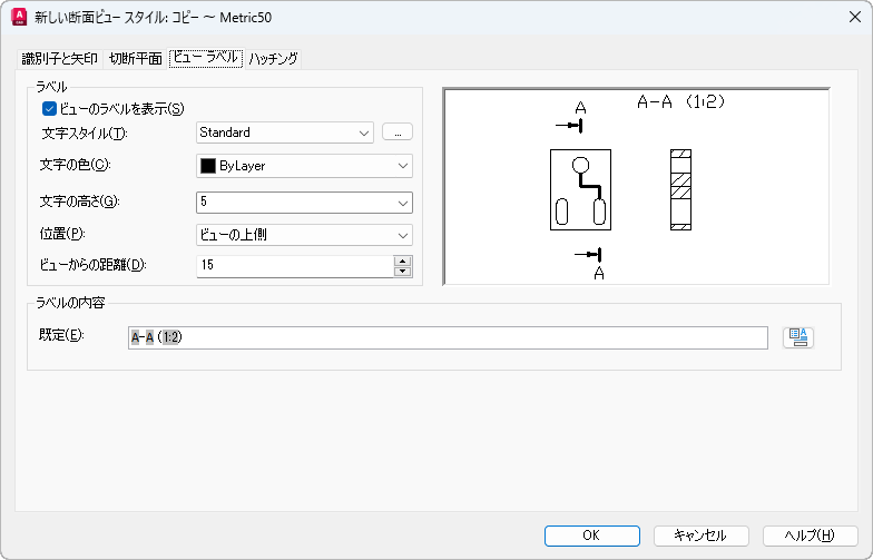 [ビュー ラベル]タブ([断面ビュー スタイル管理])