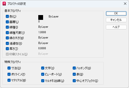 MATCHPROP[プロパティ コピー] (コマンド) 検索: