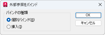 選択した DWG 参照を、現在の図面にバインドします。外部参照に従属する名前の付いたオブジェクトが、blockname|definitionname から blockname$n$definitionname の構文に変更されます。このように、現在の図面にバインドされた外部参照に従属するすべての定義テーブルに対して、一意の名前の付いたオブジェクトが作成されます。