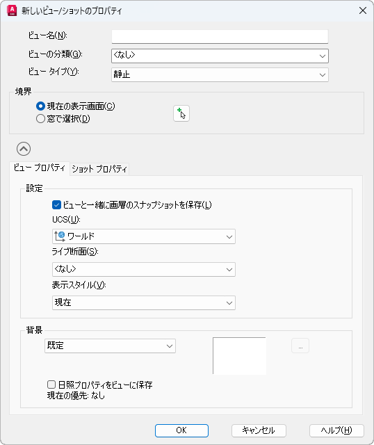 現在の表示画面を新しいビューとして使用します。