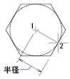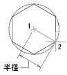 ポインティング デバイスを使用して半径を指定すると、ポリゴンの回転とサイズが決まります。半径を指定すると、ポリゴンの底辺は、現在のスナップの回転角度で描かれます。