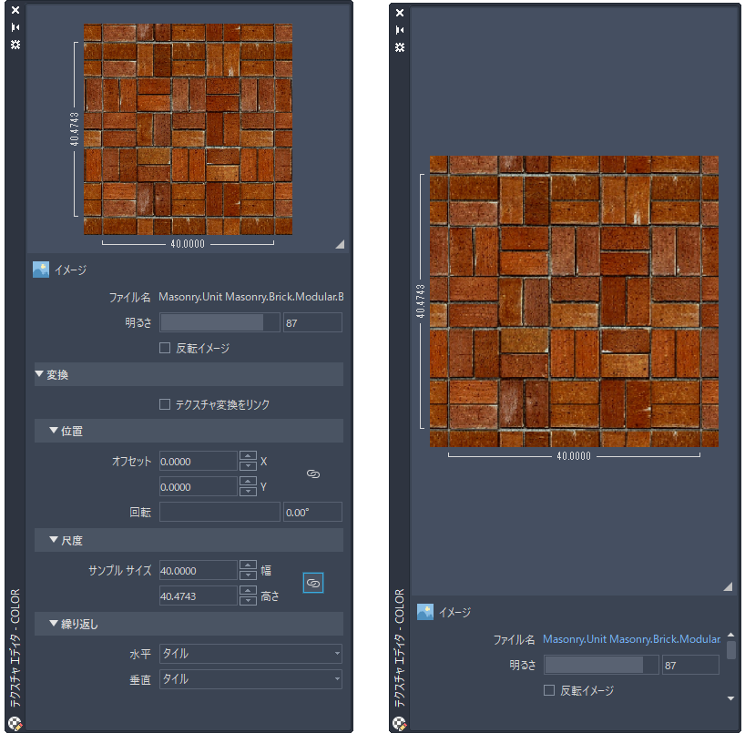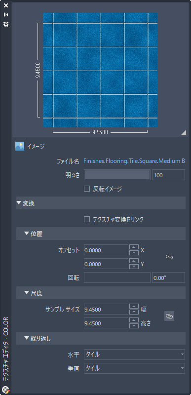 現在のテクスチャに適用した位置、尺度、繰り返しのプロパティ変更を同じマテリアル内の他のテクスチャに適用するには、[テクスチャ変換をリンク]を選択します。