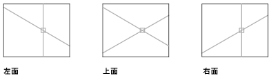 ISOPLANE[アイソメ法]コマンドは、クロスヘア カーソルが上面(30 度と 150 度)、左面(90 度と 150 度)、右面(30 度と 90 度)のいずれに置かれるかを決定します。