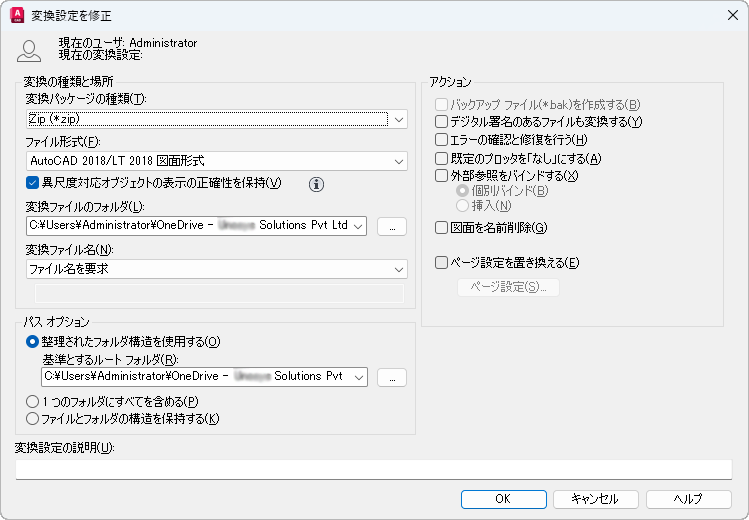 DWGCONVERT[DWG 変換] (コマンド) 検索: [変換設定] > [修正]