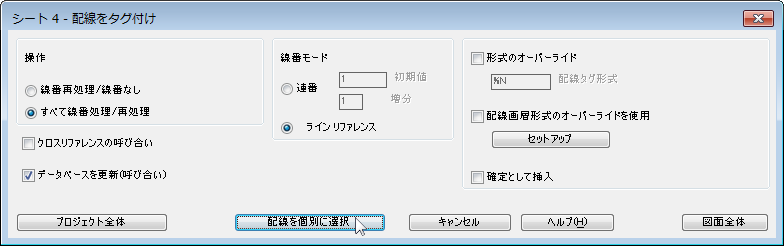 個々の配線、図面全体、およびプロジェクト全体に線番を追加するには、[線番]コマンドを使用します。