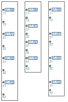 AutoCAD Electrical toolset では、任意の数の異なる PLC I/O モジュールを必要に応じてさまざまな形状スタイルで生成できます。AutoCAD Electrical toolset の場合、PLC データベース(ACE_PLC.MDB)の情報に基づいて、選択した PLC I/O モジュールがパラメトリックな生成手法で生成されます。