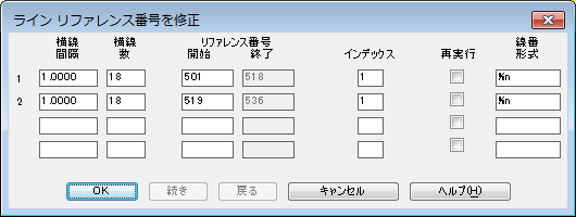 [ライン リファレンス番号を修正]ダイアログ ボックスに、図面内のラダーのリストが表示されます。
