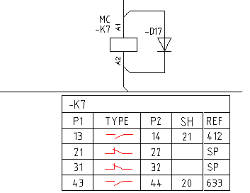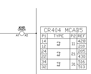 AutoCAD ブロック(.dwg)ファイルを使用して、接点タイプを示すクロスリファレンス形式を表示します。カタログ参照データベース内の _XREF_GRAPHICS テーブルはシンボル マッピングを定義します。アクティブなプロジェクトの回路図のライブラリ フォルダを対象として、挿入するマッピングされた記号を検索します。