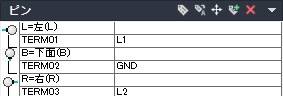 ライブラリ シンボルの配線接続点と端子文字を定義できます。配線接続を追加する場合、スタイル、配線の接続の方向、オプションの TERMxx および TERMDESCxx 属性を含めるかどうかを選択します。この実習では、配線接続属性をシンボルの左、下、および右に挿入します。