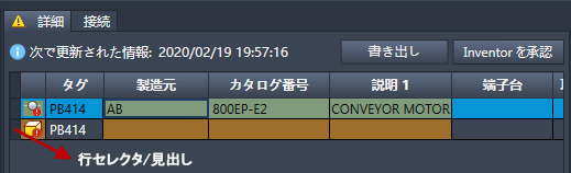 • AutoCAD Electrical toolset コンポーネントの行全体を選択するには、行セレクタ(見出し)をクリックします。