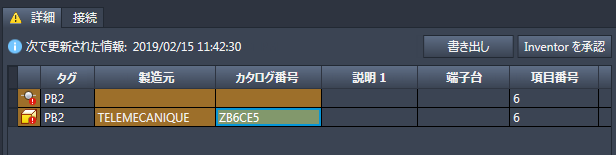 タグ、装置、およびロケーション属性に差異がある場合、これらの属性は[Inventor を承認]機能の一部ではないため、Electrical コンポーネントの値を同等の Inventor の値で手動更新します。