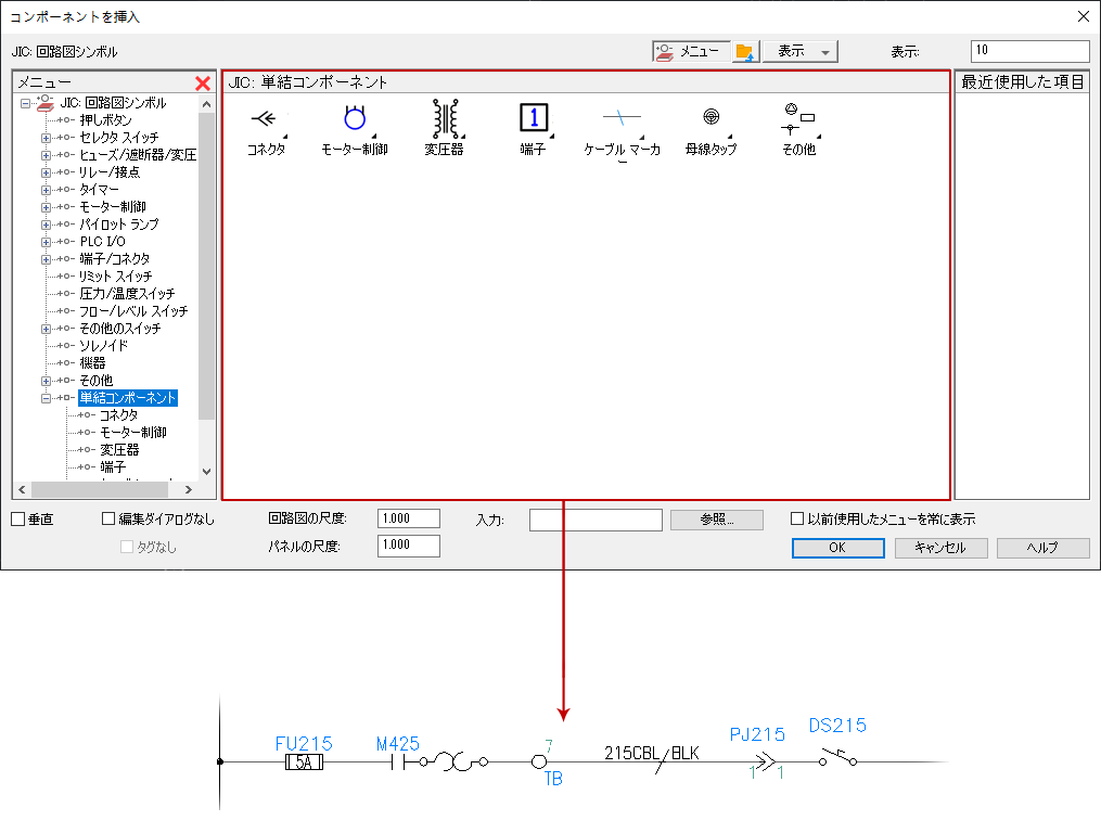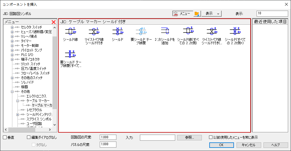 [図面形式]タブの[リファレンスの形式設定]領域で選択するラダー リファレンス設定により決まります。 (組み合わせの場合)プラグ ID またはジャック ID を指定します。プラグの場合は P、ジャック(レセプタクル)の場合は J とします。