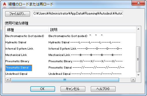 - [線種ファイルを選択]ダイアログ ボックスで[Pneumatic Signal]を選択して[OK]をクリックします。