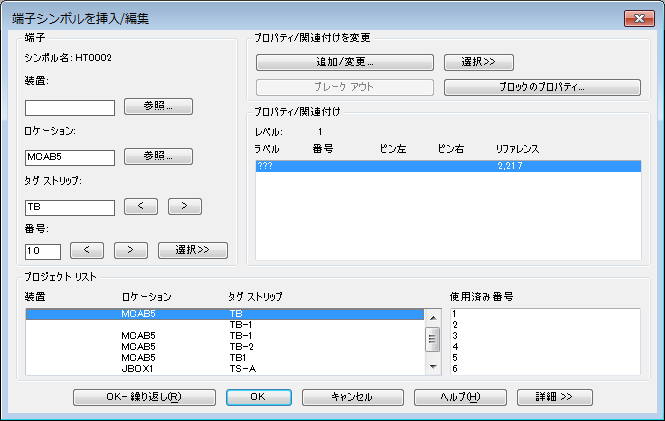 選択したパーツの製造元とカタログ情報が、[端子シンボルを挿入/編集]ダイアログ ボックスの[カタログ データ]領域に表示されます。